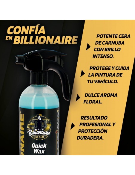 Billionaire Quick Wax Cera Rápida Enriquecida con Carnauba Protege y Abrillanta tu Vehículo Aroma Floral 750ml