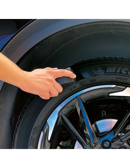 - MODO DE EMPLEO: Vierte una pequeña cantidad de producto en el aplicador de neumáticos y extiéndelo uniformemente sobre toda la superficie del neumático.