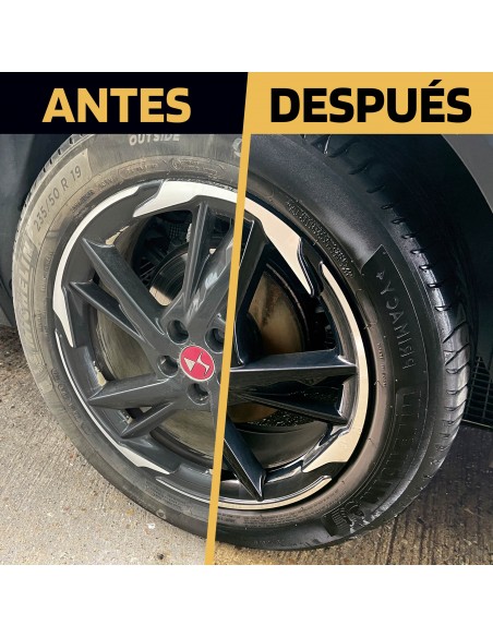 - ABRILLANTA Y RECUPERA TUS NEUMÁTICOS: Nuestro gel recupera y abrillanta los neumáticos, ofreciendo un acabado impecable con un brillo espectacular, dejándolos como el primer día. Disfruta de su característico aroma a gominolas durante cada aplicación.
