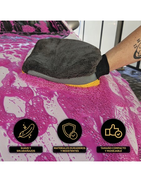 - TAMAÑO PERFECTO: Con unas dimensiones de 26x18 cm, nuestro guante proporciona una amplia superficie de lavado, lo que facilita la limpieza de grandes áreas de la carrocería con cada pasada.