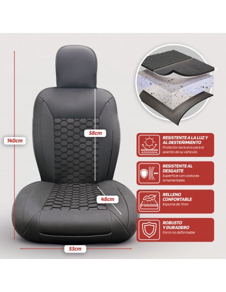 Material de alta calidad: Fabricado con tela de alta calidad, el respaldo es duradero, fácil de limpiar y resistente al uso diario. Proporciona una protección robusta contra derrames, suciedad y rozaduras, ideal para mantener tu coche siempre impecable.