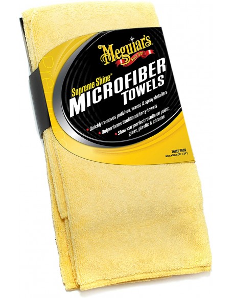 La toalla Meguiar's Supreme Shine es una polivalente toalla con una gran suavidad y de dimensiones adecuadas para todos los pasos del lavado del coche. Sus 60x40 cm la hacen ideal y versátil, vale tanto para cualquier tarea interior como para retirar las ceras más caras. Es mullida y suave, perfecta para tareas de exterior. En este pack de 3 con los productos Meguiar's ¡No habrá suciedad que se te resista!