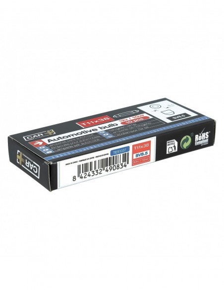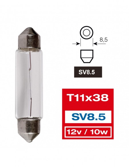 Lampara Recambio Plafonier para Coche Matricula, Maletero, Luces de Posición 12V / 5 W, T11x38 Casquillo SV8.5 Pack 10 Unidades