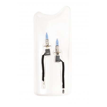 Set de 2 lámparas halógenas Super blancas. Garantizan una mejor luminosidad y una duración superior a las lámparas halógenas tradicionales, comparables a las Xenon. Pueden sustituir a las lámparas de origen sin ningún problema. Este producto es del Grupo Sumex, prestigioso fabricante y distribuidor de las marcas Car+ / Racesport / Butzi / Acquamax / HUSKY / Mr. Kleen y PULSE.