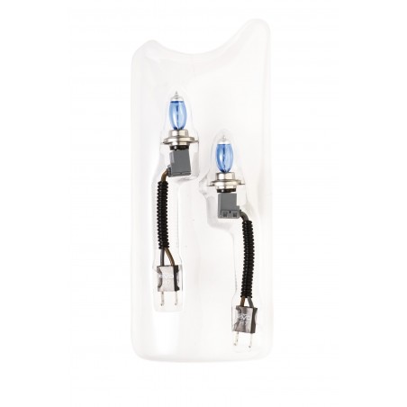Set de 2 lámparas halógenas Super blancas. Garantizan una mejor luminosidad y una duración superior a las lámparas halógenas tradicionales, comparables a las Xenon. Pueden sustituir a las lámparas de origen sin ningún problema. Este producto es del Grupo Sumex, prestigioso fabricante y distribuidor de las marcas Car+ / Racesport / Butzi / Acquamax / HUSKY / Mr. Kleen y PULSE.