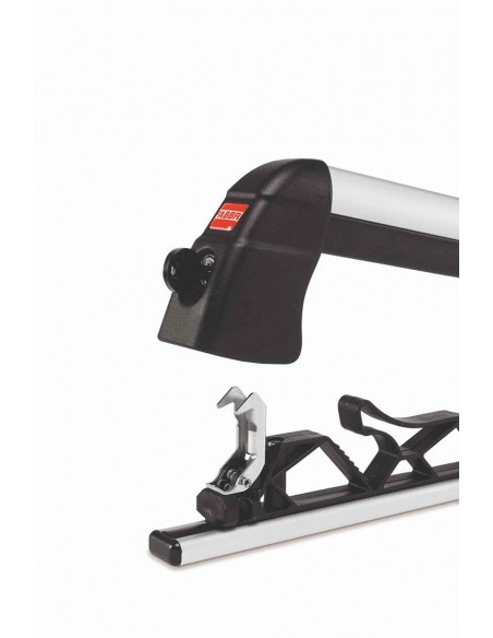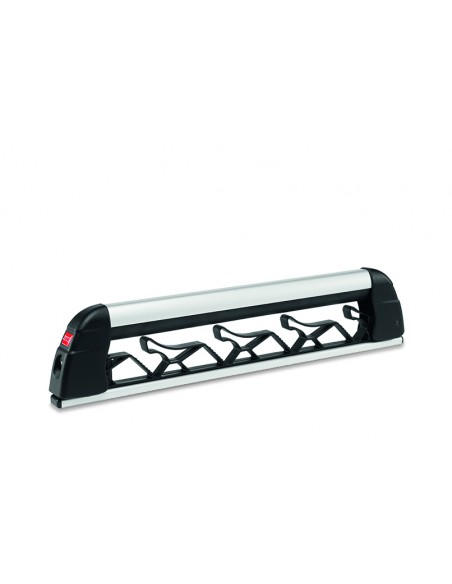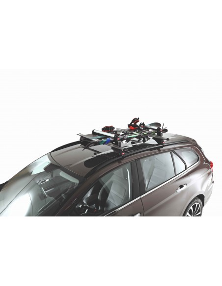 - Soporte universal para esquís y tablas de nieve que se puede montar en todas las barras de techo de acero con sección 30 X 20 mm y para la mayoría de las barras de aluminio con canal en T (22 x 6,5).