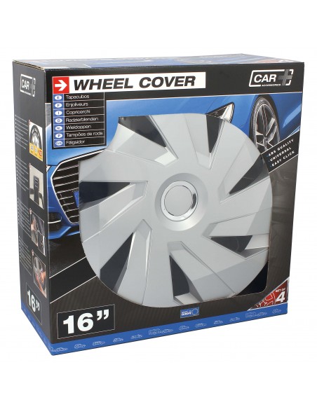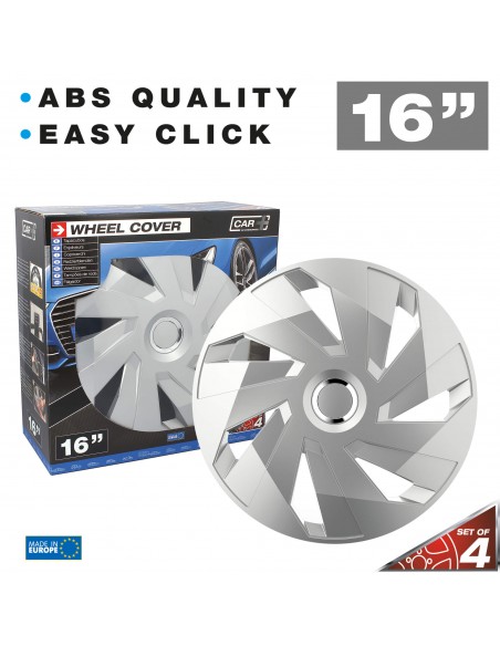 - Juego de 4 tapacubos para vehículos eléctricos con ruedas de 16 pulgadas. Modelo Voltage RC Silver.