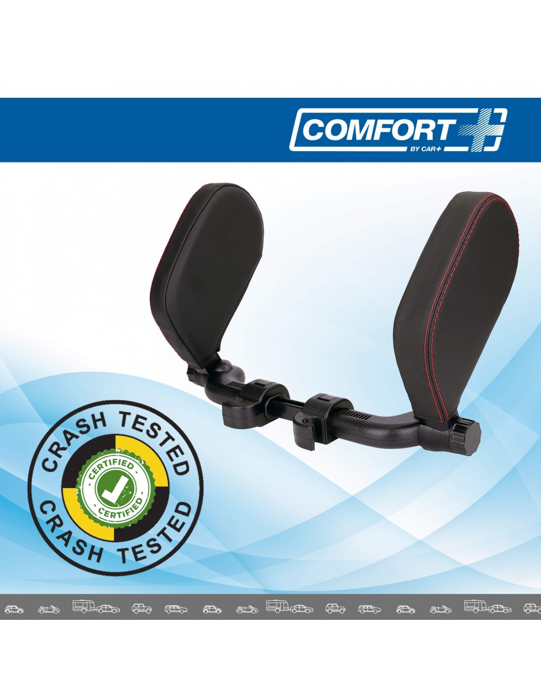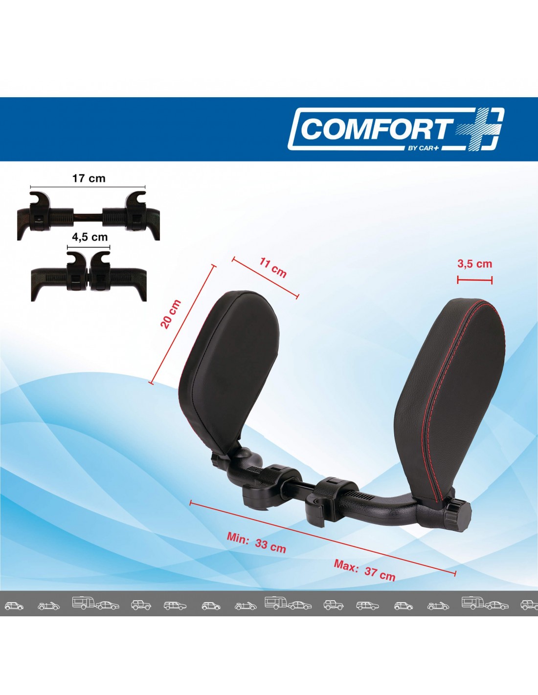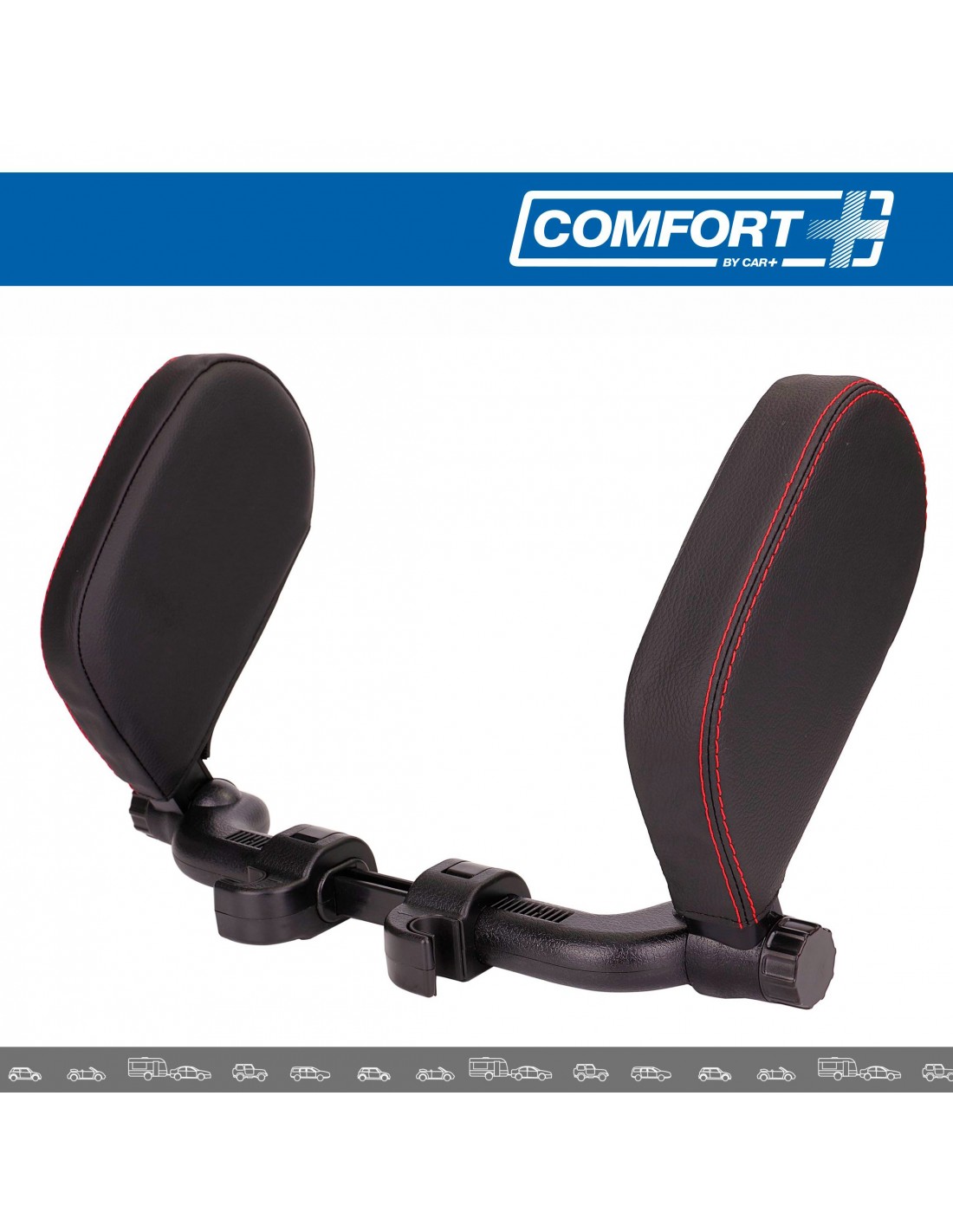 Experimente otra forma de descansar en el vehículo gracias a la gama Comfort+ y su reposa cabezas doble lateral de última generación. Que te permitirá descansar en los largos viajes para disfrutar de lo que importa. El núcleo de espuma visco elástica con memoria de forma confiere múltiples ventajas como un apoyo excelente, confort óptimo y resistencia a la deformación. El reposa cabezas doble lateral Comfort+ recuperara su forma después de su uso y no se deformará, para seguir aportando sus cualidades ergonómicas día a día. Diseño clave para integración con el asiento del vehículo adaptable a la mayoría de reposa cabezas con 2 barras de unió, no valido para asientos deportivo. De montaje sencillo y muy efectivo. Compuesto 2 palas articuladas 180 gra2 de 20cm x 11cm para poder adaptarse a ti incluso cuando lo quieres recogido. En cuero negro, fácil de limpiar y resistente a los olores. La gama Comfort+ tiene como meta ofrecer productos que nos aporten salud y comodidad en nuestro día a día.